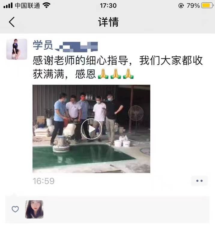 新型无机磨石由于个性化创作力无穷、摊铺比较容易等优势有目共睹,故市场需求越来越大。在全国各地如广西梧州、湖南株洲、永州、广东广州、中山、东莞,惠州等地专业从事普通水磨石浇注生产、地坪施工、防水施工、物业管理,家政清洁等行业的专业人员来美石基地学习新型无机磨石摊铺、研磨固化成镜处理技术。