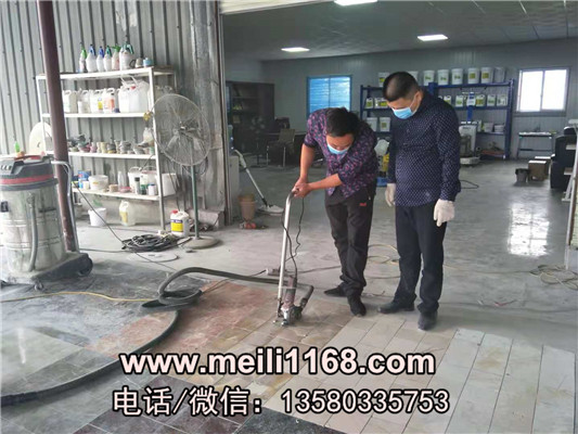 丁先生和李先生之前是在永康专业从事防盗门安装工程的,从未做过石材翻新和混凝土固化抛光。当看到美石把混凝土做的如此光亮漂亮时,决定来美石一探究竟,来到现场感觉非常不错。他们立即决定学习这项技术并从事这项工作。下面是学习现场: