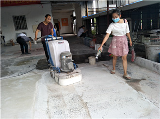 谢先生之前是在湖南常德专业从事水磨石生产浇筑的。他说现在业主对水磨石地面的要求越来越高:要求耐磨、耐踩、不起灰,特别光亮,像镜子一样光彩照人。而谢先生在水磨石细小孔洞修补方面一直没找到突破口。且看到美石修补的水磨石、混凝土、红砖地面无孔洞、光亮度远远超过自己的效果。为了给业主提供更优质的服务和满意的产品,谢先生特地来美石基地学习利用美石地坪机械、美石砼研磨快速修补抛光系统将水磨石、混凝土地坪磨成硬化高光镜面地坪!!学习现场如下图: