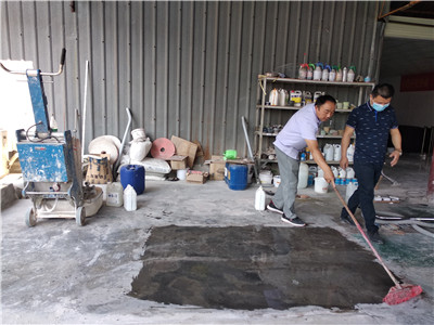 喻先生之前是在四川专业从事石材护理工程的,偶然看到美石能把普通水泥地面甚至红砖地面做的有如同石材般的光泽度。为了扩大业务范围,他特地来到广州美石培训基地学习红砖、地坪研磨固化回填抛光成镜技术!学习现场如下图: