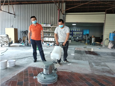 广西玉林覃先生做水磨石浇筑多年,但是只局限于传统水磨石生产工艺,对浇筑完的水磨石进行了粗、细,精的三道打磨。水磨石表面没有光泽,且日久易受污染和起尘。他的朋友杨先生看到我们美石基地把水泥地坪、混凝土地坪、普通红砖做出像镜子一样漂亮,就立即给覃先生看,覃先生看到美石的水磨石红砖镜面效果之后,立即驱车赶来美石基地学习新技术—固化、晶面处理技术。